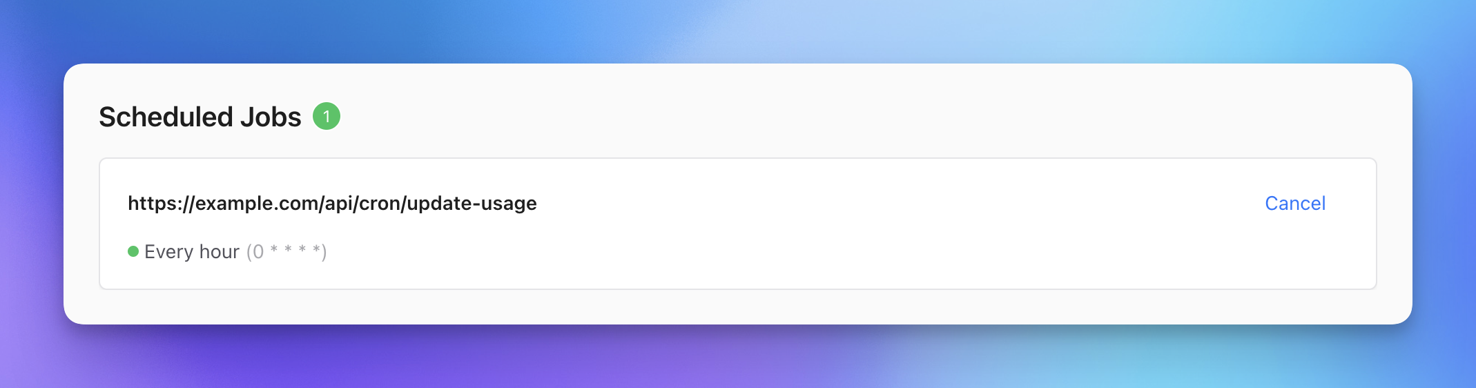 Given this code, we can now create a CRON job endpoint using QStash. Our CRON job endpoint will be triggered at the URL /api/cron/update-usage.